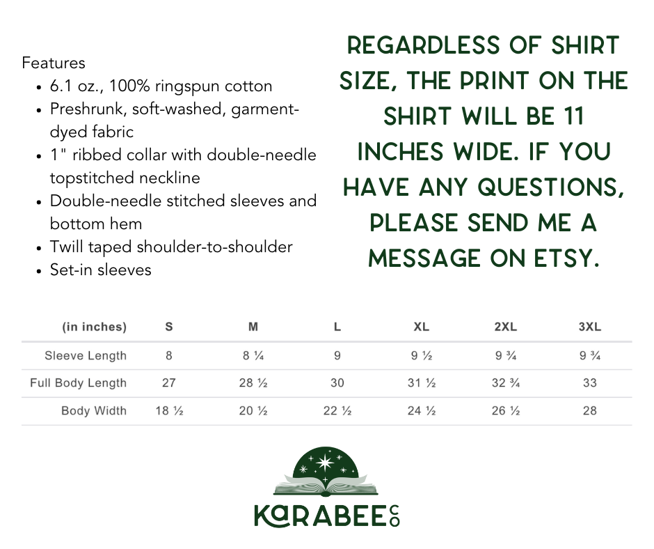 If you want any changes to the design, you MUST email me at apparel@karabeeco.com to discuss it first. Any changes made in the order notes will not be honored and your order will be canceled.