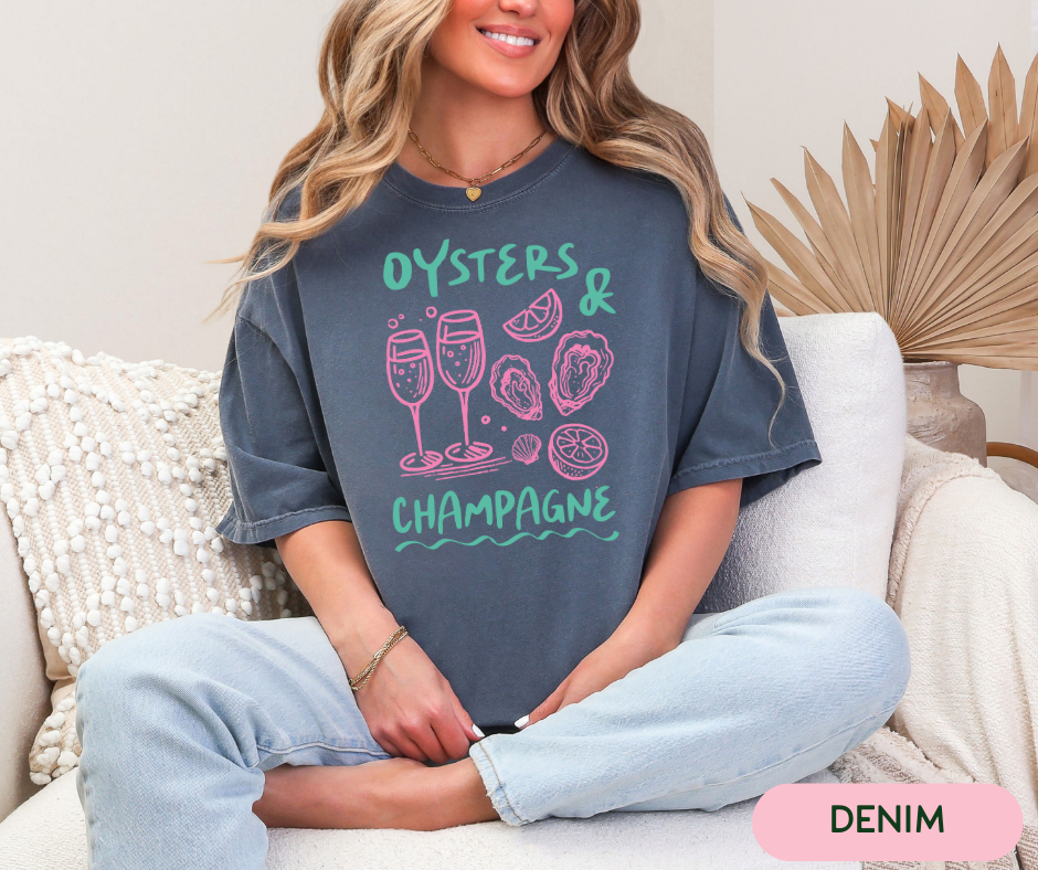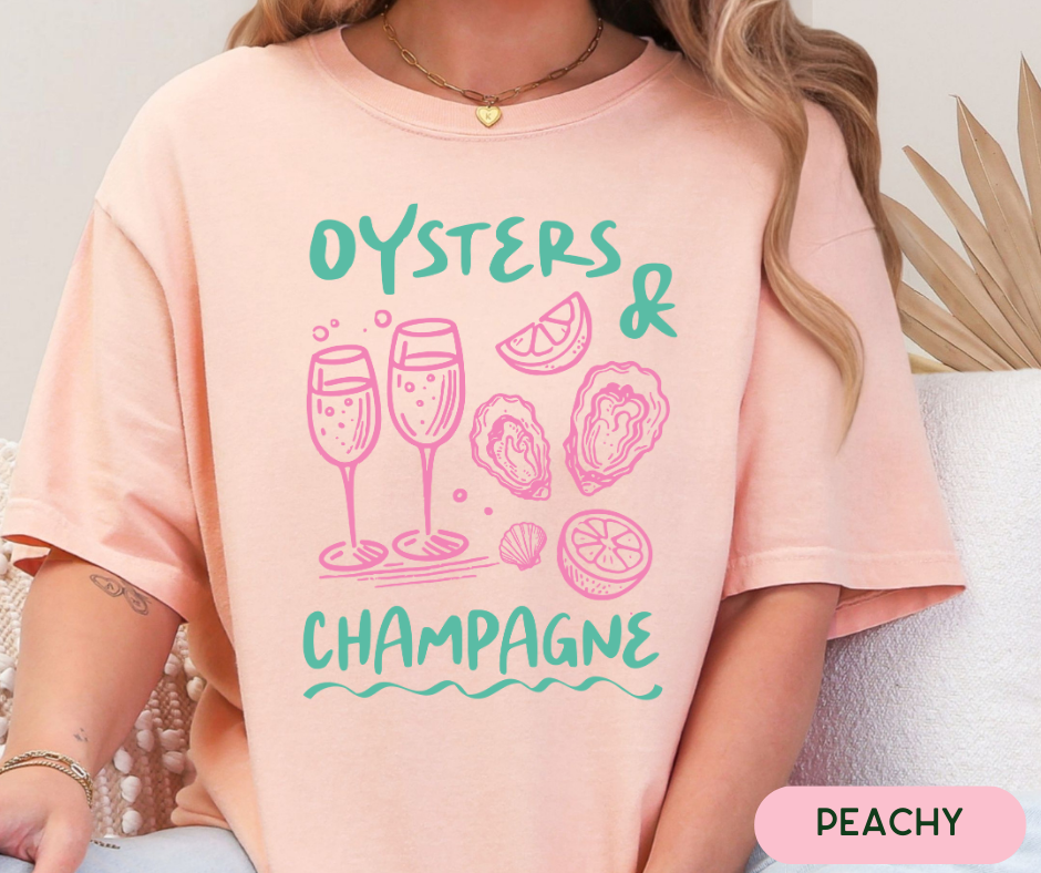 Comfort Colors Tee | Champagne Oysters Beach Beachy Swimsuit Cover Up Bright Summer Girly