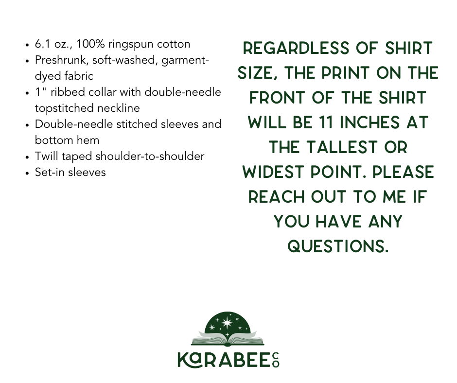 I am absolutely obsessed with this shirt and this design. I am an English teacher and wore it to school this past week and my students were equally obsessed! We are workshopping a name for her 😂