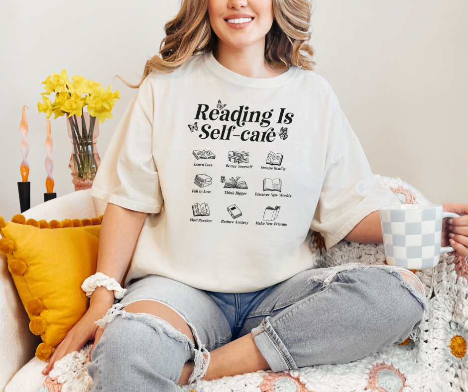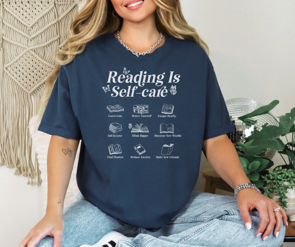 Comfort Colors Tee | Reading is Self CareBooks Reader Booktok Bookstagram Simple Minimal | Unisex Super Soft Boxy Oversized T-Shirt [B004]
