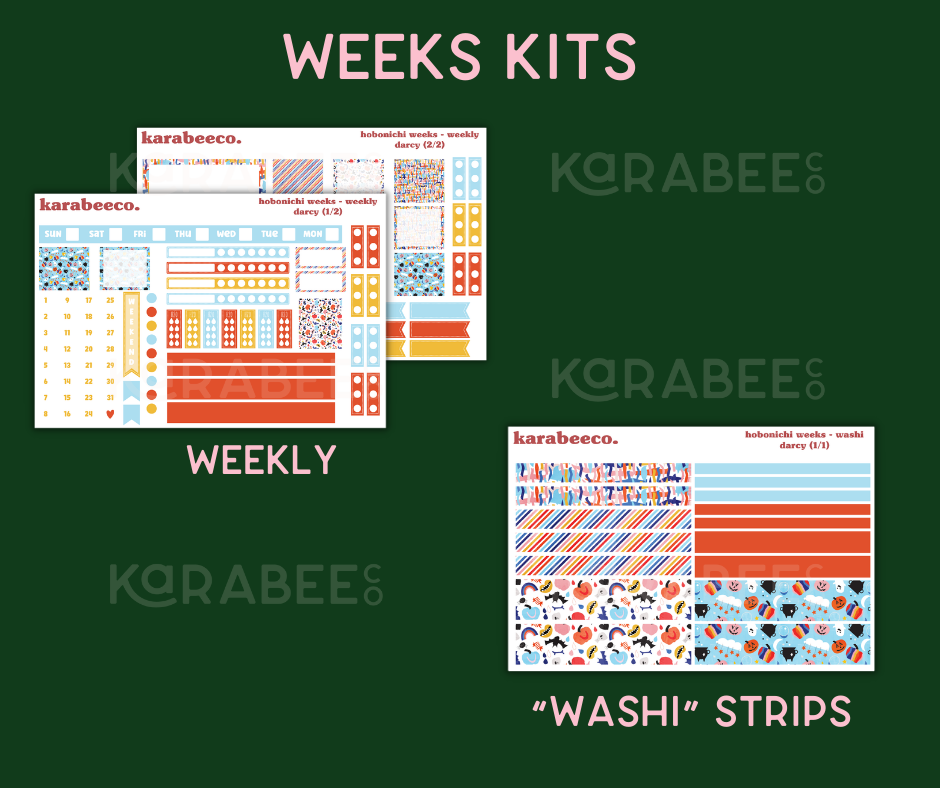 Darcy Hobonichi Sticker Kit | Cousin A5, Techo A6, Weeks
