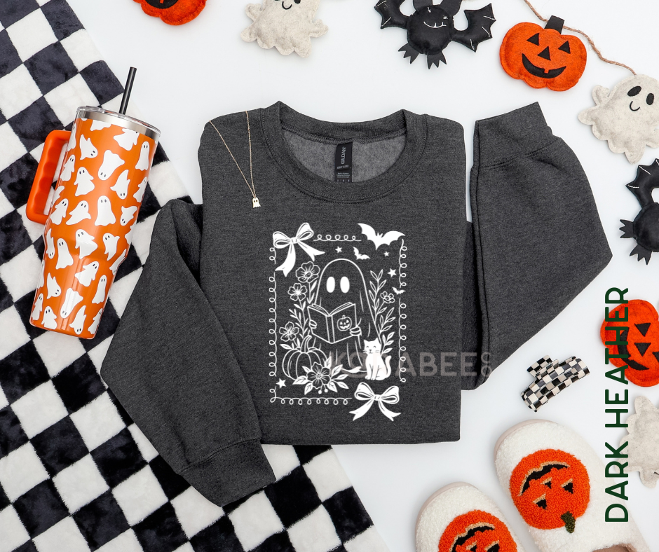 Gildan Crewneck | Halloween Cute Spooky Simple Minimal Girly Reading Ghost Books [h011]