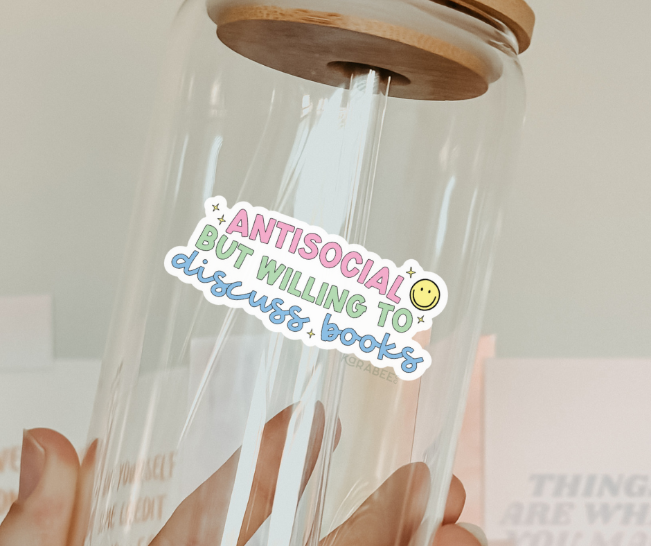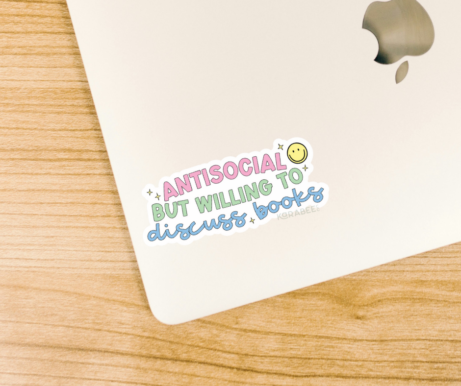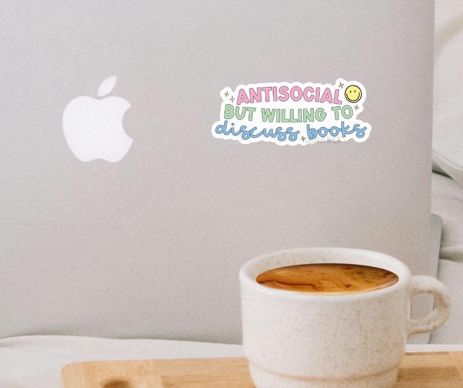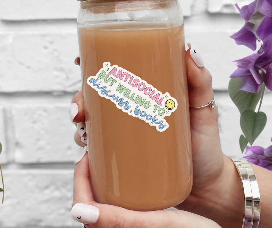STICKER Antisocial but Willing to Discuss Books | Reader Bookstagram Booktok Book Cute Girly Preppy Funny | Water Proof Sticker 3 Inches