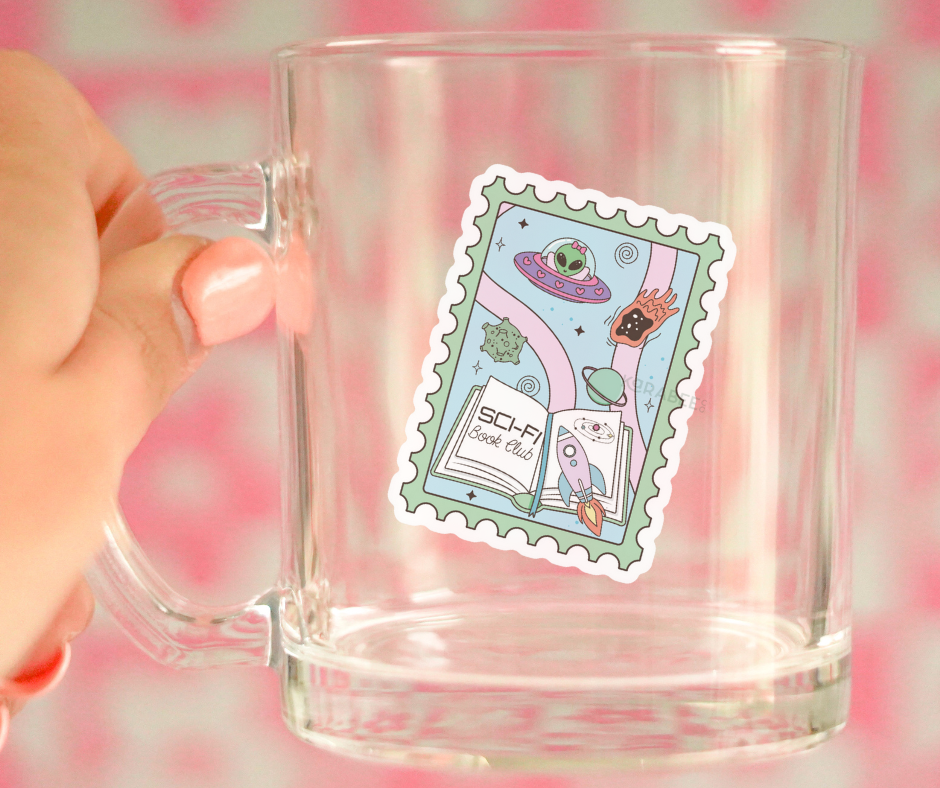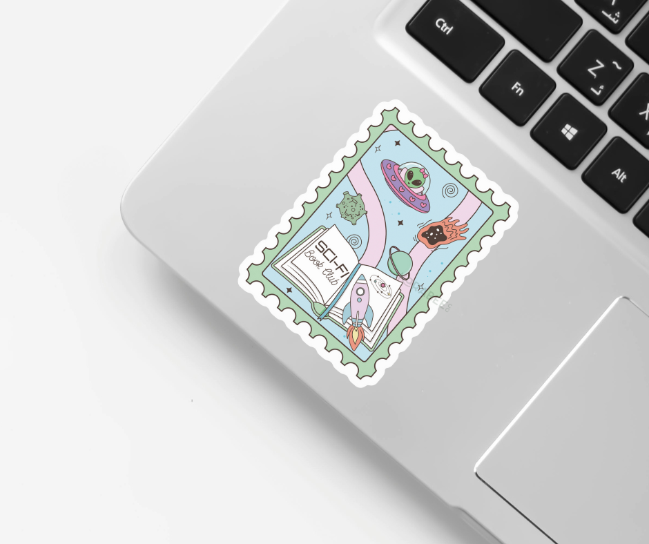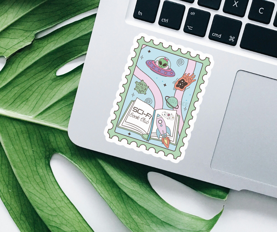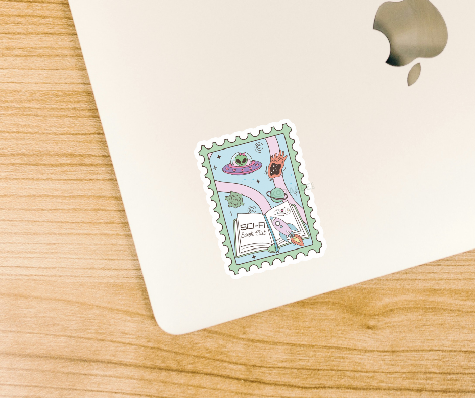 STICKER Sci-Fi Stamp Girly Reader Cute Trinket Book Books Trendy | 3 Inch Waterproof Sticker for Laptop, Water Bottle, Car | BOOKS00099